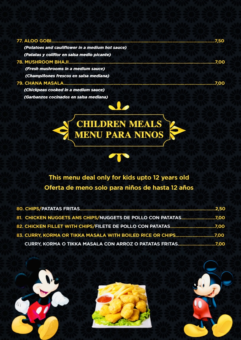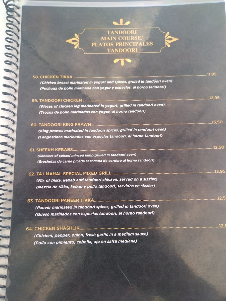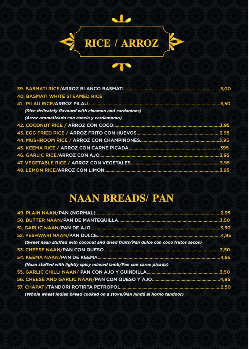 Taj Mahal indian Restaurant pinoso Menu